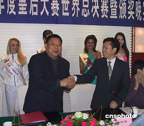 中新社長沙十月二十四日電(劉雙雙)備受矚目的開價高達三十萬元人民幣一桌的世界旅游皇后總決賽暨頒獎晚宴皇后席名花有主。有幸獲此殊榮的湖南高橋大市場發(fā)展有限公司今日與大賽組委會正式簽訂了購買協(xié)議。