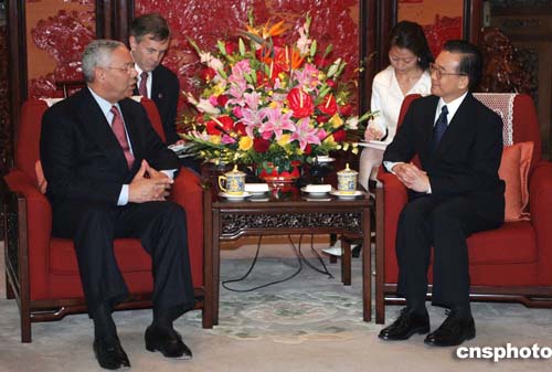 溫家寶會見鮑威爾 稱領(lǐng)導(dǎo)人會晤有助于雙邊關(guān)系