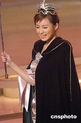 2004亞洲小姐競(jìng)選總決賽,于十月二十四日晚在香港演藝學(xué)院舉行,來自杭州的佳麗呂晶晶奪得桂冠后,將權(quán)杖任意揮舞有失莊重。中新社記者:錢興強(qiáng)