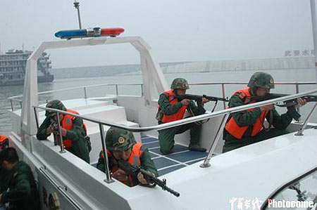 武警湖北總隊(duì)擔(dān)負(fù)著三峽大壩的守衛(wèi)任務(wù),為確保這個(gè)世界級(jí)大壩的絕對(duì)安全,總隊(duì)在抓好部隊(duì)官兵思想建設(shè)的同時(shí),從人員裝備和技戰(zhàn)術(shù)訓(xùn)練上積極做好安全保衛(wèi)準(zhǔn)備工作,隨時(shí)處置突發(fā)事件的發(fā)生,這次在庫(kù)區(qū)水域進(jìn)行應(yīng)急處置演練和地面執(zhí)勤人員防襲擊演練,目的在于提高三峽守衛(wèi)部隊(duì)官兵的綜合執(zhí)勤能力。