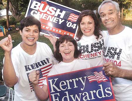 據(jù)多項(xiàng)民調(diào)顯示,布什克里兩人贏得今年美國(guó)總統(tǒng)大選的機(jī)會(huì)各占一半。這一結(jié)論不僅在丹尼斯的家里表現(xiàn)得一清二楚,在整個(gè)威斯康星州也十分明顯:支持自己偏愛一方的當(dāng)?shù)剡x民分別乘車,前往選舉辦公室登記選民身份。
