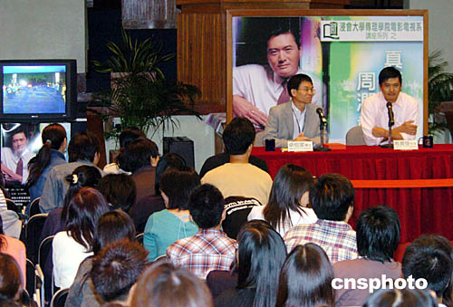 平素學(xué)術(shù)氣氛濃厚的香港浸會大學(xué)校園,今日卻滲透出一種“星味”來。原來,周潤發(fā)出現(xiàn)校園,與大學(xué)生真情對話。難得一睹巨星風采,一眾接受高等教育的大學(xué)生也瘋狂起來,原本嚴肅論電影的座談會,變成了周潤發(fā)影迷聚會。