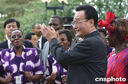 吳邦國委員長來到聯(lián)合國駐內(nèi)羅畢總部,受到當(dāng)?shù)刂铣獔F的熱烈歡迎。