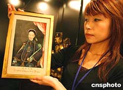 北京姑娘手捧一幅當(dāng)年洋畫家為中國清朝道光皇帝繪制的精致油畫,此件一百多年收藏在歐洲的油畫,十月末被送到中國北京和上海展示,將于十一月中旬在德國納高拍賣。作者:賈國榮
