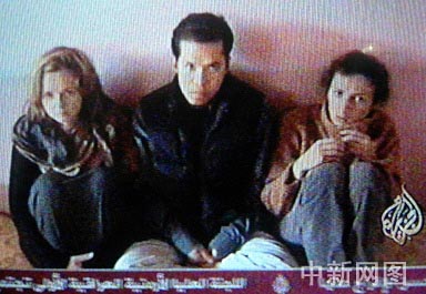 從半島電視臺(tái)節(jié)目中抓拍的畫面中可以看到3名被“穆斯林軍”綁架的聯(lián)合國人質(zhì)。10月31日,綁匪在錄像中提出3天之內(nèi),外國軍隊(duì)和聯(lián)合國機(jī)構(gòu)必須撤離阿富汗,否則就殺掉人質(zhì)。