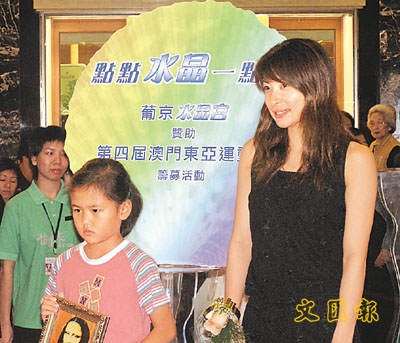 此外,郭晶晶前晚出席第四屆澳門東亞運動會“開元”之火采集及傳遞儀式及文藝晚會時,接受了東亞運組委會頒贈的“東亞運志愿工作者大使”聘書,成為澳門東亞運動會的一分子。