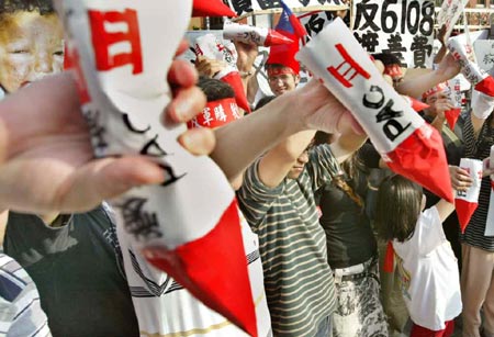 中新網(wǎng)11月2日電 據(jù)臺灣媒體報(bào)道,臺“立法院程序委員會(huì)”今天再度開會(huì)討論6108億軍購草案是否能夠付委,島內(nèi)的“反6108軍購大聯(lián)盟”持續(xù)在“立法院”前靜坐抗議,出席成員以手捏扁自制的愛國者三型導(dǎo)彈道具,并反手將彈頭朝下表達(dá)反對軍購案。