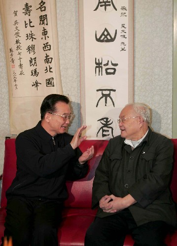 中新網(wǎng)11月2日電 據(jù)新華網(wǎng)報(bào)道,在中國(guó)科學(xué)院成立55周年前夕,中共中央政治局常委、國(guó)務(wù)院總理溫家寶10月31日上午專程來(lái)到中關(guān)村著名科學(xué)家吳文俊、劉東生、李國(guó)杰家中,看望三位科學(xué)家,與他們促膝談心,討論中國(guó)科技發(fā)展問題。