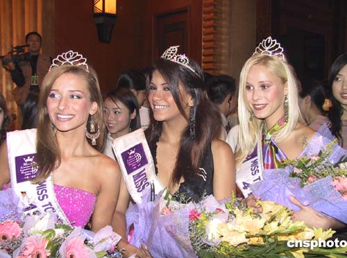 二零零五年國際旅游小姐冠軍總決賽中國四川賽區(qū)大賽啟動儀式十一月四日在成都舉行。二零零四國際旅游小姐大賽冠軍(中)、亞軍(左)以及獲得第五名的斯洛伐克小姐(右)為啟動儀式助興。作者:張華