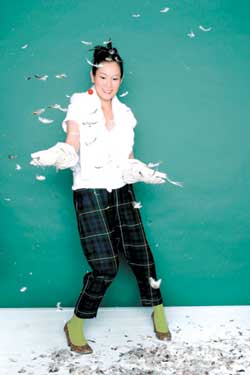 從首體主體舞臺(tái)延伸出的T型延伸臺(tái)長(zhǎng)達(dá)8米,奶茶可以在其間自由與茶迷們親密溝通。上海演唱會(huì)上,雖然也有吊鋼絲,但由于舞臺(tái)很小,和觀眾太近,只能上下活動(dòng),效果自然不很壯觀。這次不同,舞臺(tái)前后各有支柱,奶茶的鋼絲可以上下前后移動(dòng),加上舞臺(tái)前沿還有很多鏤空,不時(shí)有風(fēng)從那里吹過(guò)來(lái),可以想象屆時(shí)的壯觀場(chǎng)景。