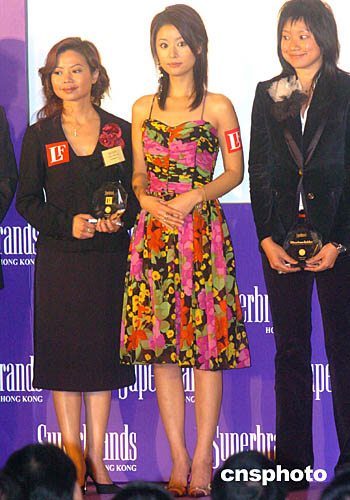 影視紅星林心如4日晚出席在香港演藝學(xué)院舉行的2004香港超級品牌頒獎典禮。中新社記者:趙振清