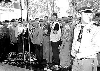 被拒進(jìn)場后,大部分觀眾雖然十分失望,但仍在廣場附近徘徊,久久不愿離去。一些年輕氣盛的觀眾則對此表示強烈憤慨。一名中年男子高聲質(zhì)問保安員:“我們都是看了報紙?zhí)匾廒s過來的,你們在宣傳時只說是到8日結(jié)束,沒說明到中午就閉館,這不是折騰人嘛,白白浪費了我們的時間和心機,你們要給精神賠償!”