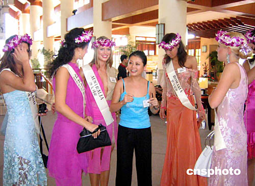 前來(lái)三亞參加第54屆世界小姐總決賽的澳大利亞小姐楚楚動(dòng)人,落落大方。
