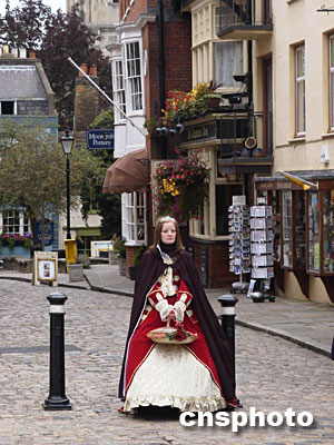 溫莎城堡外穿著中世紀(jì)傳統(tǒng)服裝當(dāng)攝影“道具”的英國(guó)女郎。余瑞冬 攝