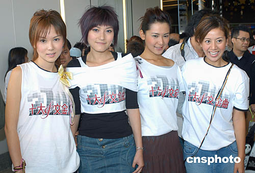 樂壇組合女生宿舍四名成員11月11日在香港出席香港電臺(tái)與博愛醫(yī)院合辦的第二十七屆《十大中文金曲頒獎(jiǎng)典禮》揭幕記者會(huì)。