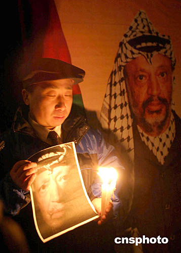圖:北京部分民眾自發(fā)悼念阿拉法特