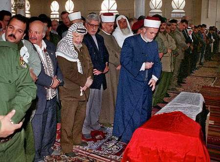 中新網(wǎng)11月12日電 1999年12月11日,巴勒斯坦民族權(quán)力機構(gòu)主席阿拉法特與兄弟法特希·阿拉法特在加沙南部參加姐姐伊納姆的葬禮。(春風(fēng))