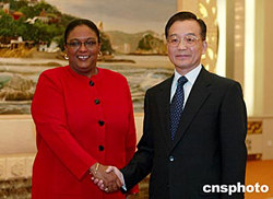 中新社北京十一月十二日電(記者李靜)中國國務(wù)院總理溫家寶今天下午在人民大會堂會見了來華訪問的巴巴多斯副總理莫特利,雙方就中巴關(guān)系交換了意見。