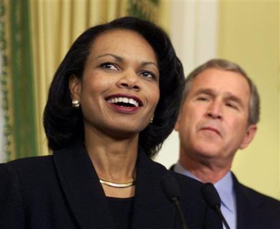 2001年布什就任總統(tǒng)后,賴斯出任國家安全事務(wù)助理一職,成為布什的親信。美國媒體最近推測稱,賴斯如果不當國務(wù)卿,她甚至有希望接替拉姆斯菲爾德成為美國歷史上第一位女國防部長。(來源:新華網(wǎng),作者:萬宏)