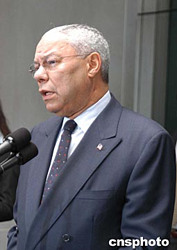 美國(guó)國(guó)務(wù)卿鮑威爾當(dāng)?shù)貢r(shí)間11月15日宣布辭職,在美國(guó)引起巨大反響,人們?yōu)椴际苍诘诙蝺?nèi)失去溫和派的代表聲音感到遺憾。這是鮑威爾最近在美國(guó)國(guó)務(wù)院門前歡迎中國(guó)外長(zhǎng)李肇星致辭時(shí)的照片。作者:余東暉