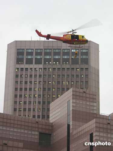 二零零四“亞洲消防首長協(xié)會(huì)”年會(huì)十一月十七日在臺北舉行。臺灣島內(nèi)特搜隊(duì)員表演直升機(jī)滯空下降。作者:董會(huì)峰