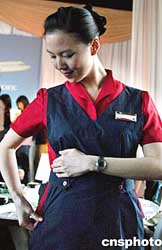 國泰航空18日在半島酒店展示即將更新的員工服裝。國泰航空的機艙服務(wù)員及香港地勤人員將于明年三月?lián)Q上即日展示的新裝。作者:宋吉河