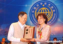 開幕式上還舉行頒獎儀式,認(rèn)知科學(xué)和實(shí)驗(yàn)心理學(xué)家、中國科學(xué)院生物物理研究所陳霖教授獲二00四年香港求是基金會“杰出科學(xué)家獎”,獎金一百萬元人民幣,該基金會出資人、已九十一歲高齡的香港愛國實(shí)業(yè)家查濟(jì)民親自向陳霖頒獎。安徽中科大訊飛信息有限公司總裁劉慶峰等五人榮獲本年度“中國科協(xié)求是杰出青年成果轉(zhuǎn)化獎”,另有十五位青年才俊獲“中國科協(xié)求是杰出青年實(shí)用工程獎”。