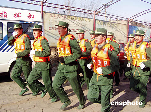 十一月二十一日上午八時二十一分,東方航空公司云南分公司一架CRJ二零零小型客機在包頭墜毀,機上四十七名乘客、六名機組人員及一名地面人員不幸遇難。圖為武警戰(zhàn)士趕赴空難現(xiàn)場。作者:葉飛