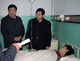 孫華山要求有關(guān)方面要全力以赴、千方百計(jì)地?fù)尵任V夭∪,確保他們的生命安全。同時(shí),要精心治療、護(hù)理好其他住院接受治療的受傷人員,要求醫(yī)院安排好傷員的治療、飲食和陪護(hù)等各方面的工作,爭(zhēng)取使他們?cè)缛湛祻?fù)。
