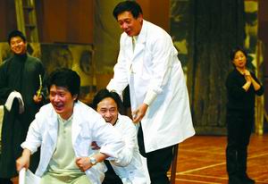 中新網11月23日電 據京華時報報道,昨(22)天下午,根據老舍同名短篇小說改編的話劇《開市大吉》正式投入排練。人藝劇場排練廳內,幾塊木板搭建起一個醫(yī)院門面,李光復、張永強、孫星身著白大褂,正為“誰當院長”吵得臉紅脖子粗。坐在場地前方的導演顧威則不時站起身,走到演員中間指導建議。顧威表示將力爭再現“原汁原味”的老舍式幽默。