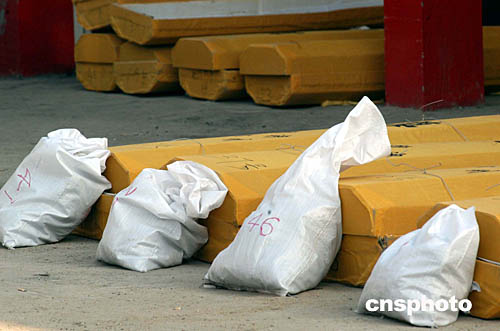 11月23日,11.21包頭空難事故遇難者遣體與白色口袋內(nèi)的遇難者遣物由有關(guān)部門(mén)鑒定并妥善安置,等待親屬辨認(rèn)安葬。中新社記者:張宇