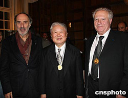 | 11月22日晚,中國(guó)著名建筑學(xué)家吳良鏞教授在巴黎出席法國(guó)建筑科學(xué)院院士就位儀式。吳良鏞教授是在1999年獲得該院外籍院士稱號(hào)的,事隔5年,他終于有機(jī)會(huì)專程赴巴黎舉行就位儀式。擁有300名院士的法國(guó)建筑科學(xué)院有60名外籍院士,吳教授是3名中國(guó)籍院士之一。圖為吳良鏞院士和法國(guó)建筑科學(xué)院院長(zhǎng)(右)和中國(guó)國(guó)家大劇院的設(shè)計(jì)者、法國(guó)建筑師安德魯在就位儀式上合影。作者:鐘誠(chéng)