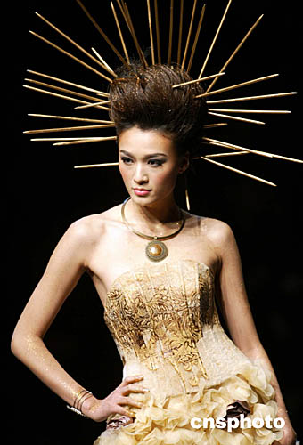 十一月二十三日,在中國(guó)國(guó)際時(shí)裝周會(huì)場(chǎng)北京飯店內(nèi),一場(chǎng)時(shí)裝發(fā)布會(huì)通過(guò)一組構(gòu)思奇特的模特造型將服裝設(shè)計(jì)師的時(shí)裝設(shè)計(jì)作品演繹得淋漓盡致,也更添模特嬌媚。中新社記者:盛佳鵬