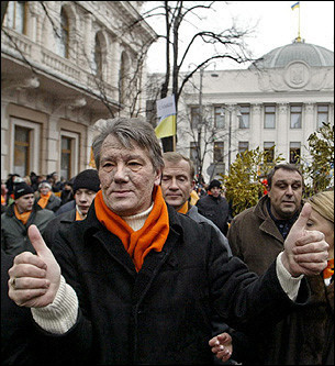 數(shù)以萬計(jì)的示威者一度包圍了總統(tǒng)府,要求允許反對(duì)派總統(tǒng)候選人尤申科進(jìn)入。通往總統(tǒng)府的道路上擠滿了揮舞旗幟,并高呼尤申科名字的反對(duì)派支持者。