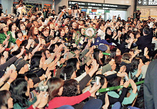 很多日本婦女在裴勇俊抵日前多個(gè)小時(shí)就到機(jī)場霸占最佳位置,準(zhǔn)備一睹他的風(fēng)采。裴勇俊本人帶了約一百名警衛(wèi)隨行,但日本當(dāng)局再增派一百名保安人員協(xié)助,以免出亂子。
