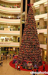 經(jīng)濟(jì)持續(xù)向好,加上臨近圣誕節(jié),香港大型商場均以大額宣傳費用,以增加人流,希望今年圣誕節(jié)業(yè)額有可觀收入。圖為時代廣場大堂裝飾紅紅火火的巨型圣誕樹,充滿圣誕氣氛。作者:譚達(dá)明