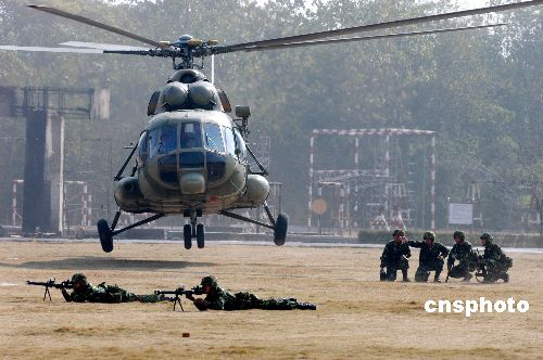 反恐應(yīng)急分隊機(jī)降突擊隊搭乘運輸直升機(jī)機(jī)降后迅速組織戰(zhàn)斗 。