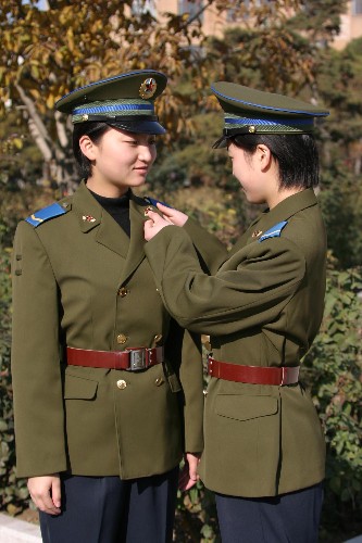 新式士兵常服樣式與現(xiàn)行的87式常服相同,服裝板型有一定改進(jìn),腰身比較明顯,共有04式士兵夏常服、士兵冬常服、水兵服、士兵大檐帽、水兵帽、士兵冬帽等6個(gè)品種。