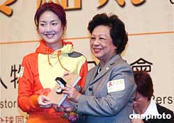 香港影視紅星楊千嬅12月1日出席“世界愛滋日展覽”活動(dòng),接受特首夫人董趙洪娉贈(zèng)送紀(jì)念品,楊千嬅作為聯(lián)合國艾滋病規(guī)劃署香港大使,獲得公眾投票選舉為最高的難忘人物。作者:洪少葵