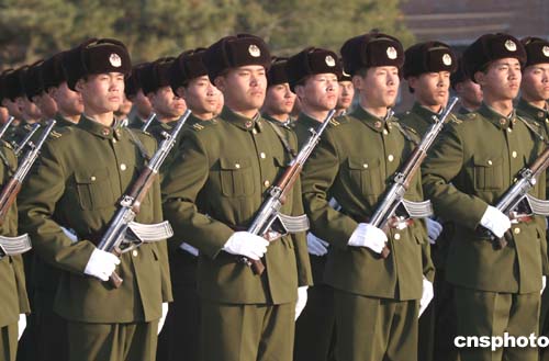 十二月一日,經(jīng)中央軍委批準(zhǔn),中國(guó)全軍部隊(duì)士兵和部分軍校學(xué)員開(kāi)始統(tǒng)一換發(fā)用仿毛面料制成的零四式士兵冬常服。明年五月,士兵將換發(fā)用同一材料制成的新式夏常服。作者:王利軍