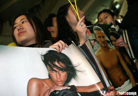 12月1日晚,懷胎7月的維多利亞作為精英模特大賽的評委再次抵達(dá)上海,機(jī)場有近百名歌迷迎候。圖片來源:中青在線