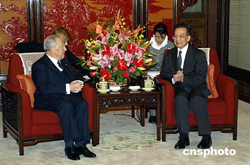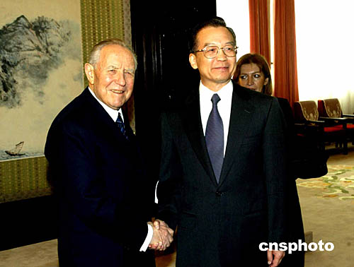 錢皮表示完全贊同溫家寶關(guān)于進一步發(fā)展兩國關(guān)系的意見。他表示,與1983年他作為意大利中央銀行行長首次訪華時相比,意中合作已取得了豐碩成果。這次率多名政府部長訪華,希進一步增強兩國政治合作、推動文化交流和經(jīng)貿(mào)往來。他重申意大利一貫堅持一個中國原則,高度重視發(fā)展對華關(guān)系,將與中方攜手努力,共同開創(chuàng)兩國友好合作的新階段。