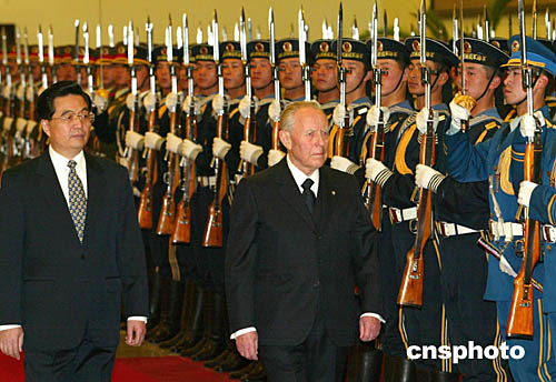 錢皮表示完全贊同胡錦濤對進一步發(fā)展兩國關(guān)系的建議,重申意大利政府一貫堅定奉行一個中國政策。