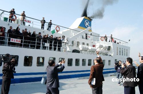 中新社福州十二月七日電 (記者陳國(guó)明)福建居民赴金門(mén)地區(qū)旅游七日正式啟動(dòng)。上午十時(shí)許,由五十多名福建游客組成的三個(gè)旅游團(tuán)乘坐“同安”號(hào)客輪從廈門(mén)和平碼頭啟程直航金門(mén)。