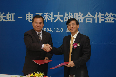 中新四川網(wǎng)12月8日電(陳紅)四川長虹電器股份有限公司董事長趙勇和成都電子科技大學校長鄒壽彬,今天分別代表雙方,為醞釀已久的長虹成都電子科大校企聯(lián)姻發(fā)展戰(zhàn)略簽約定音。