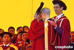 一九九六年諾貝爾經(jīng)濟(jì)學(xué)獎(jiǎng)獲得者的J James A Mirrlees爵士,12月9日獲香港中文大學(xué)社會(huì)科學(xué)博士。作者:宋吉河