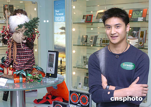 中國跳水金牌選手田亮11日來到香港時代廣場8層電子產(chǎn)品專賣店﹐為該店圣誕節(jié)禮品促銷造勢。中新社記者:趙振清