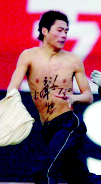 昨天下午,在首屆中超杯決賽中,擁有主場之利的魯能泰山隊憑借舒暢和王超的進球,2:0擊敗聯(lián)賽冠軍深圳健力寶隊,如愿將中超杯冠軍獎杯留在了濟南。在王超打入第二球后,賽場上出現(xiàn)了戲劇性一幕,一名赤膊的年輕球迷突然沖進賽場,上演了國內(nèi)綠茵場的首次“裸奔”鬧劇。
