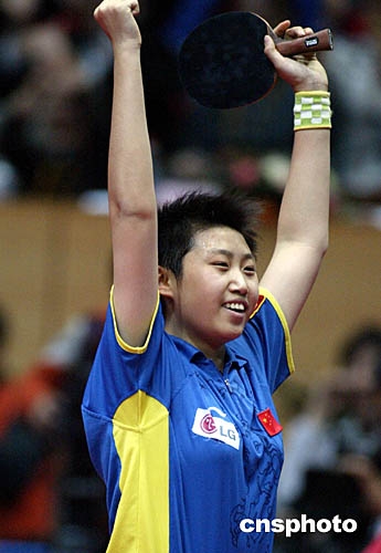 十六歲的小將郭躍今天表現(xiàn)神勇,在女單比賽中接連戰(zhàn)勝狀態(tài)回勇的老將王楠和上屆冠軍牛劍鋒,獲得其運(yùn)動(dòng)生涯中第一個(gè)國(guó)際大賽冠軍,也成為該賽事歷史上最年輕的冠軍。