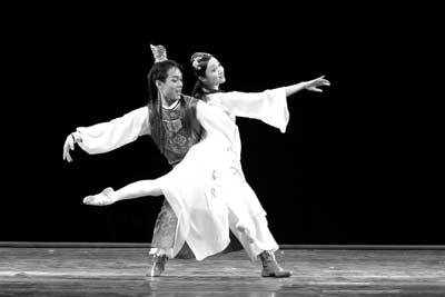趙明的第一個承諾是:“大家都說《紅樓夢》難做,原來的著作太大,大到?jīng)]人敢碰,雖然我的舞劇從原書的120回濃縮到舞臺上的90分鐘,我可以保證我的舞蹈可以讓每一個觀眾明白舞臺上到底發(fā)生了什么。換句話說,就是每個觀眾都可以看懂我的《紅樓夢》中的故事到底講了些什么!蔽鑴〉拈_場堂堂皇皇,賈府各色人等魚貫出場,奢華也好、靚麗也好,只有當寶、黛、釵三人紛沓而至的時候,音樂和舞蹈才呈現(xiàn)出真正的眷戀。集萬千寵愛于一身的寶玉精靈般出場,寶釵的出場則要雍容華貴得多了,她代表一種身份的象征,而林妹妹走上舞臺的一剎那,人們就會感受到舞臺上刺骨的冷,最終點化了全局的宿命——為愛而亡。不用注解、不用說明,趙明的舞劇就這樣在開始的時候已經(jīng)讓觀眾明白了每個人物的身份和他們在戲劇中的命運。
